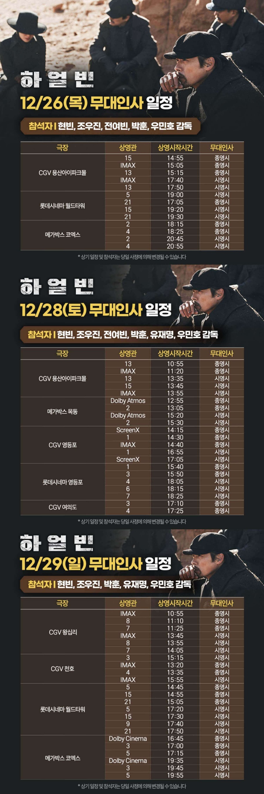 - 12/29(일) : 현빈, 조우진, 박훈, 전여빈, 우민호 감독