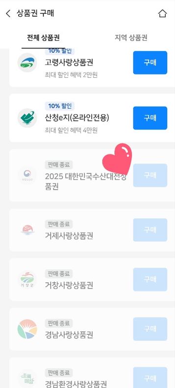 - 비플페이 어플 > 공공상품권 > 구매하기 > 2025대한민국수산대전상품권(오픈시간되면 활성화됩니다.)